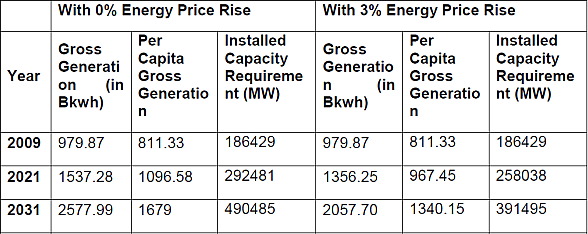 Table 2. Gross generation of electricity (in Bkwh) for 8% GDP growth
