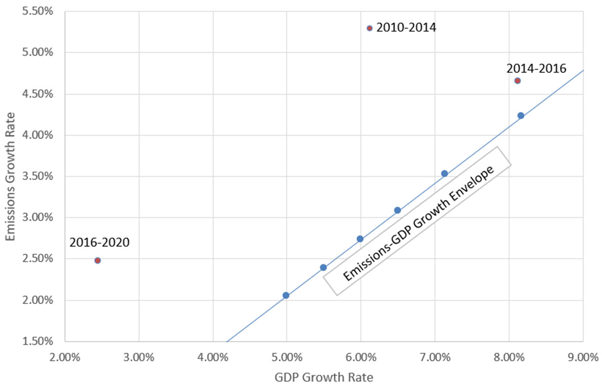 Figure 3. Pledge-compatible relationship between average emissions and GDP growth