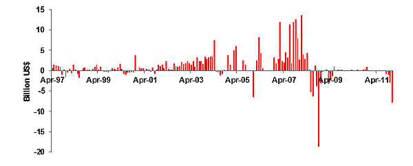 Notwithstanding the gradual liberalisation, India’s financial integration has steadily gone up since 1991. Gross capital flows have increased nearly 22 times from $42.7 billion in 1991-1992 to over $932.3 billion in 2010-2011. As a share of GDP, this amounted to an increase from 15.5% to 55.2%.