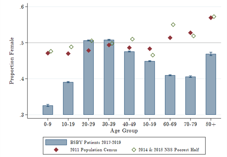 Over the past 15 years, India’s central government and numerous state governments have put in place health insurance programmes that entitle low-income households to free healthcare at public and empanelled private hospitals. Health equity and universal health coverage are explicit goals of these programmes. In new research (Dupas and Jain 2021), we study gender equity in the Bhamashah Swasthya Bima Yojana (BSBY)1 health insurance programme, which was launched in the state of Rajasthan in 2015, and is similar in design to the national Pradhan Mantri Jan Arogya Yojana (PMJAY)2 programme.