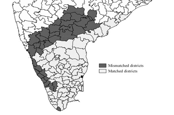 Figure 1. Mother tongue vs. official language of provinces in South India: Matched and mismatched districts