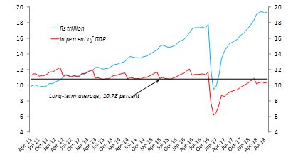 Note: Nominal GDP growth for 2018-19 assumed 11.5% as per Union Budget 2018-19.Source: RBI & author’s calculations.