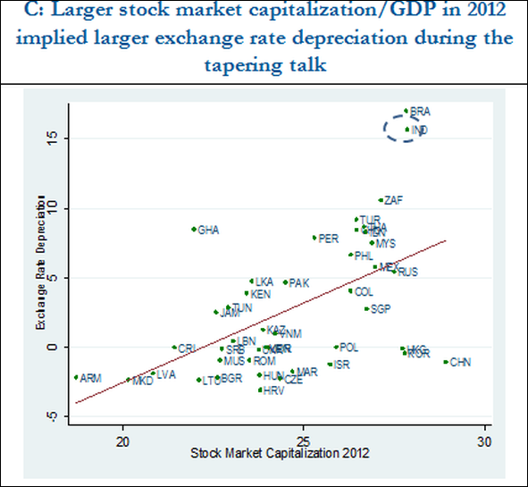 Figure 1c. Size and liquidity of financial markets and effect on the exchange rate during Fed’s tapering talk (India was among the largest and most liquid markets)