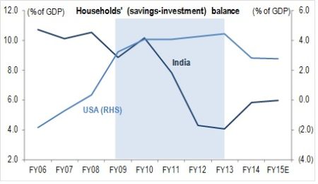 In contrast, in the case of US households, more than 45% of the financial assets are risky, and only about 15% are in the form of deposits (US Federal Reserve, 2014). Therefore, in this case, any policy action which boosts equities, even though it makes deposits less attractive, will help increase the return on household savings.