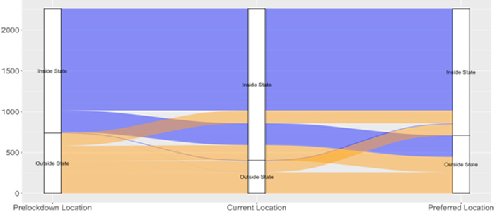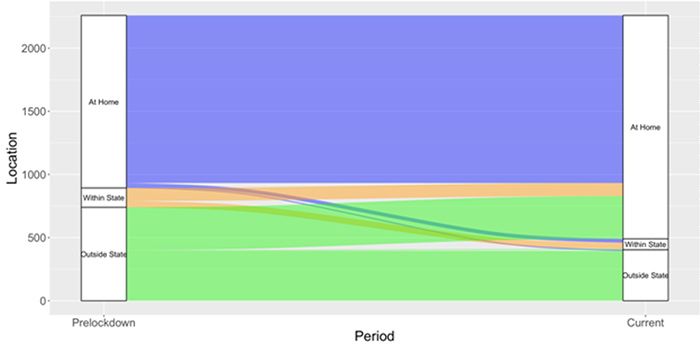 Nearly half (45%) of the respondents who resided outside of their home state in the pre-lockdown period (interstate migrants) had returned to their home state, indicative of the ‘return migration’ that the nationwide lockdown initiated. In addition, 44% of intrastate migrants, that is, those that resided somewhere within their home state but not at home when the Covid-19 crisis hit, had returned home when we surveyed them. The large majority of respondents who were at home before the lockdown continued to stay at home in June and July 2020.1