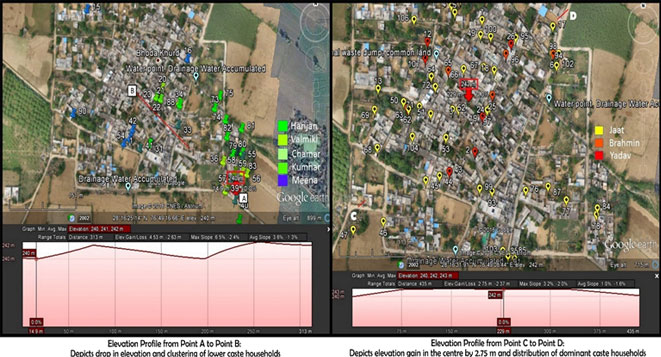 Figure 1. Describing different elevation profiles, and segregation of various communities in a village