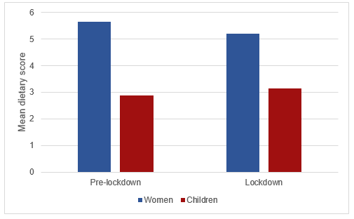 Figure 1. Average dietary scores among women and children