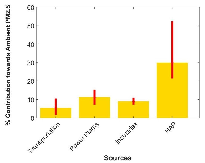Figure 1. Percentage of different sources’ contribution towards ambient PM2.5 in India