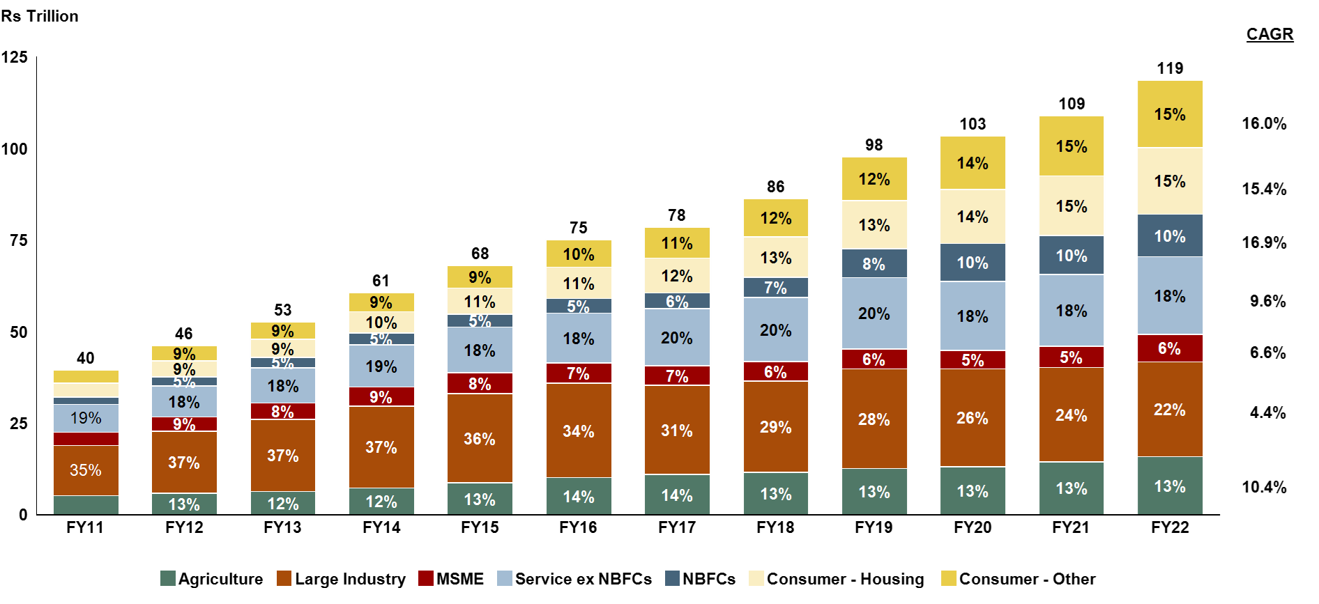 Figure 2. Breakup of bank credit by borrower, 2011-2022