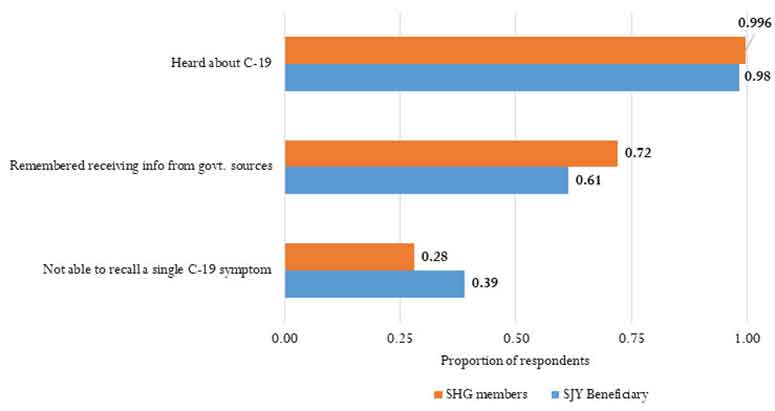 आकृति 1. एसजेवाई लाभार्थियों और एसएचजी सदस्यों की कोविड के बारे में जानकारी