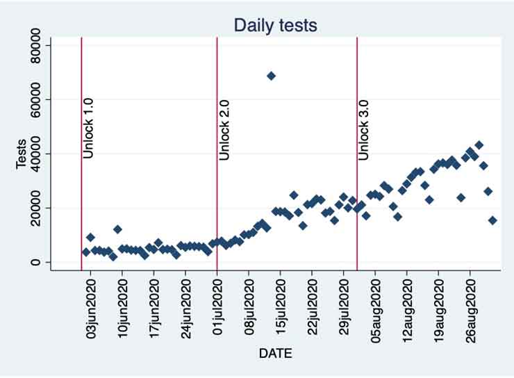 Figure 3. Daily tests in Kerala since Unlock 1.0