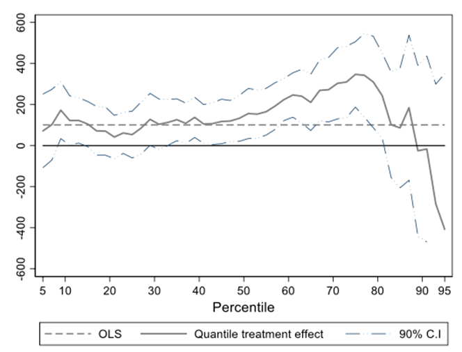 Figure 2. The distributional impacts of microfinance on per capita monthly consumption