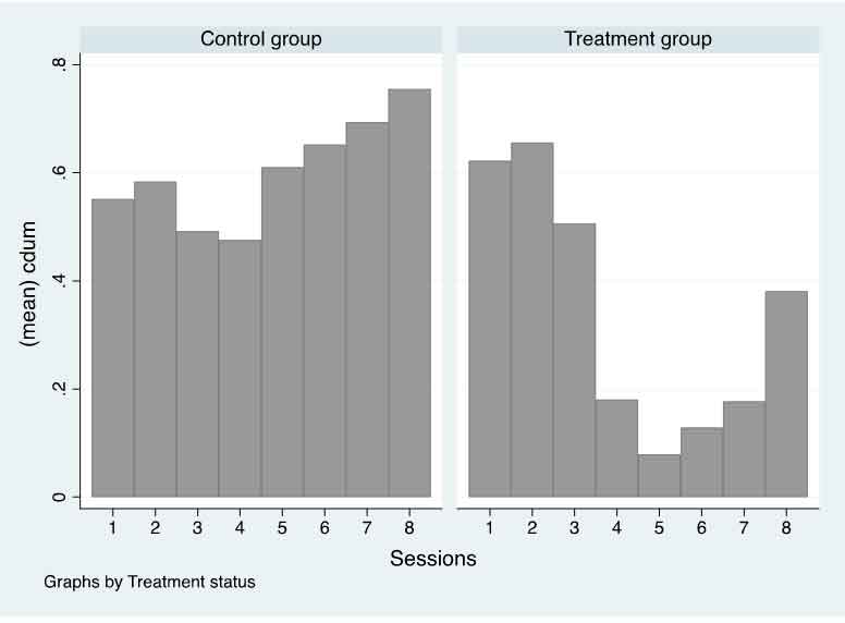 Figure 1. Percentage of sex workers choosing current account over fixed deposit, by session