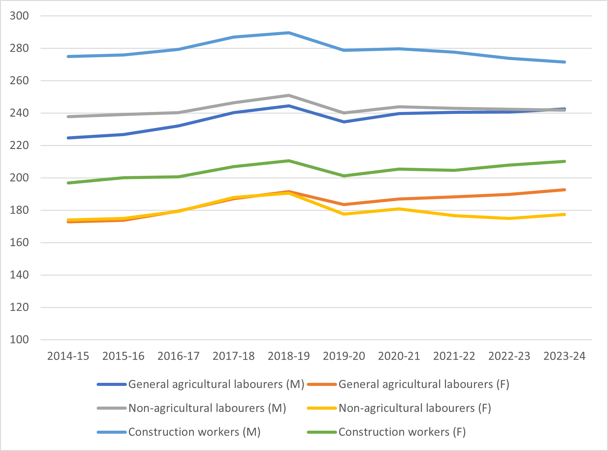 Figure 1. Real wages (Rs/day at 2014-15 prices)