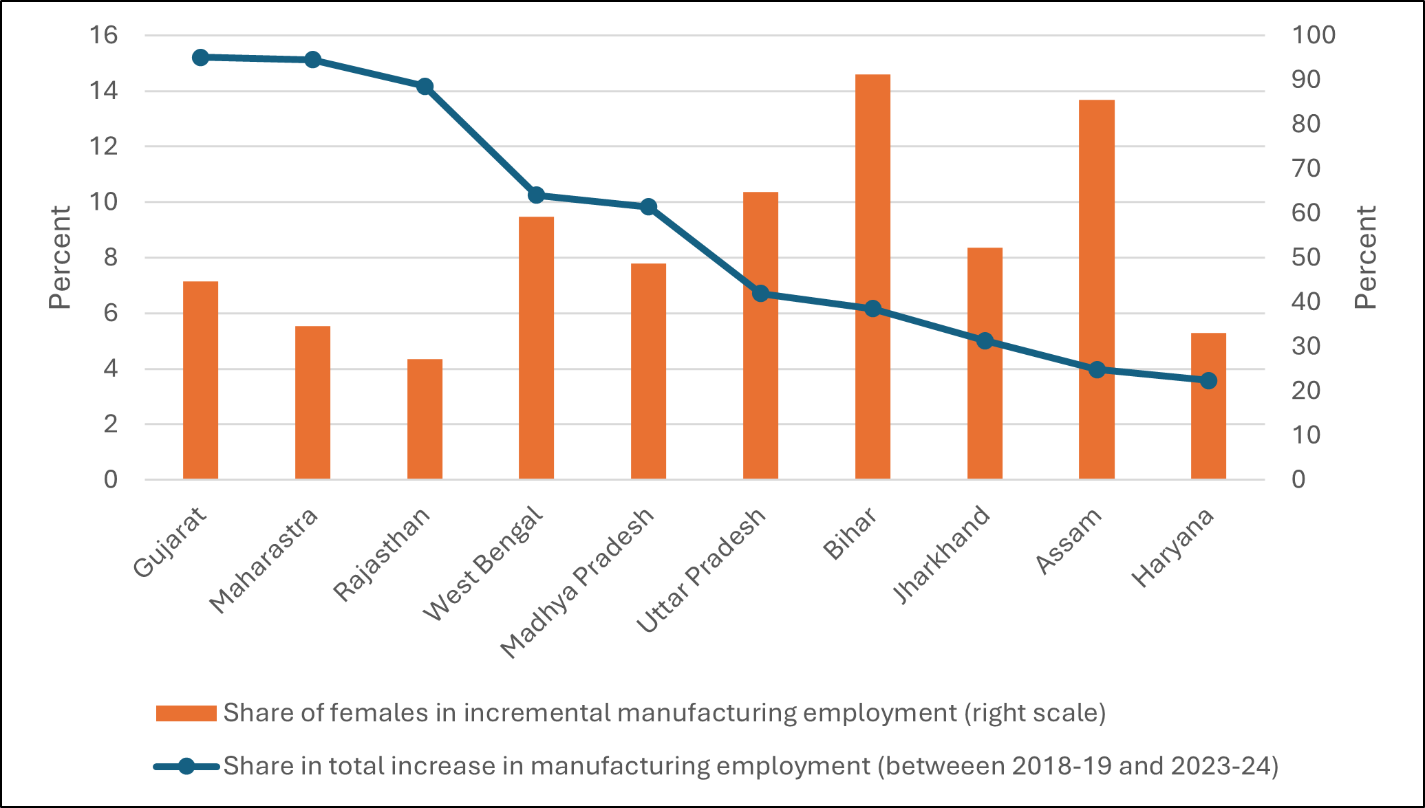 Note: Only those states in which manufacturing employment increased by 500,000 or more between 2018-19 and 2023-24 are considered.