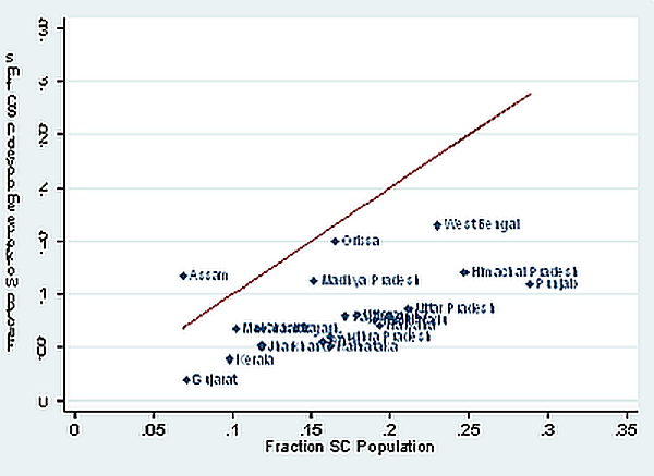 Our second finding is that the under-representation of SCs and STs in enterprise ownership is widespread across space and time. As Figure 1 shows, the share of the non-agricultural workforce employed in SC-owned firms is lower than their population share in all states except for Assam. It is not the case that the states which were among the earliest to have progressive movements to end caste discrimination during the first half of the 20th century (Kerala, Karnataka, Andhra Pradesh, Tamil Nadu, Maharashtra) have a lower degree of under-representation.