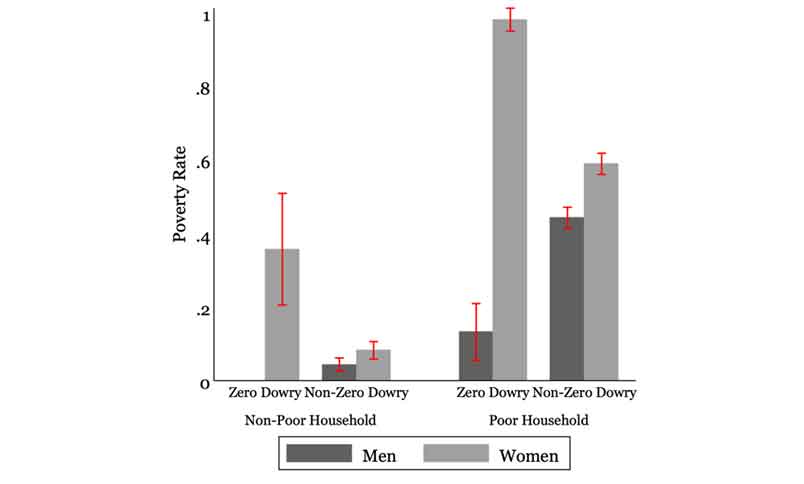 Figure 3. Individual-level poverty (for women and men), by household poverty and dowry amount