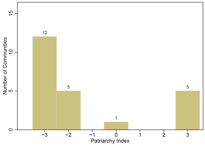 Note: An index value of +3 stands for matrilineage and matrilocality, implying a high social status of women; −3 stands for the opposite and implies a relatively low social status of women; 0 stands for gender-balanced social norms and implies a similar social status of women and men.