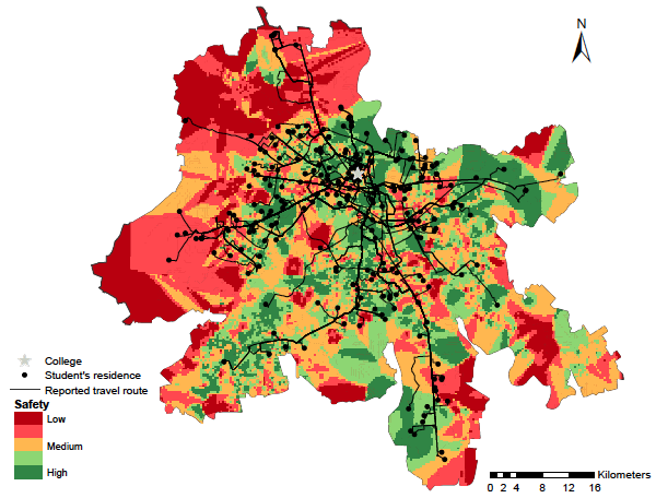 Figure 1. Perceived safety and students’ reported travel routes to a college in Delhi University