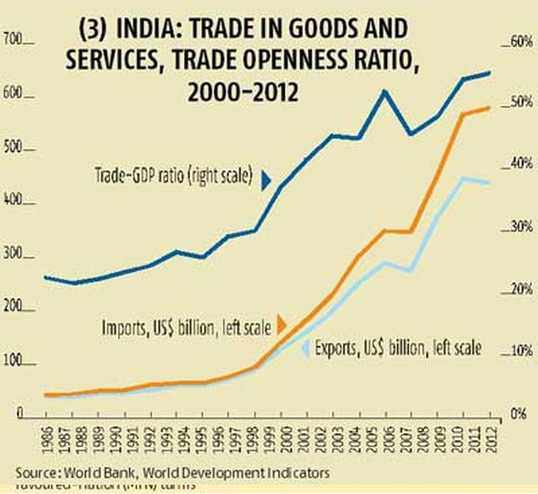So, when India´s trading partners complain about the restrictiveness of the country´s trade regime, they are both right and wrong. It is closed in trade policy terms but open in terms of trade outcomes. Joan Robinson probably had some lofty, metaphysical conception when she observed that everything and its opposite are true about India. That observation applies more mundanely to India´s trade regime too.